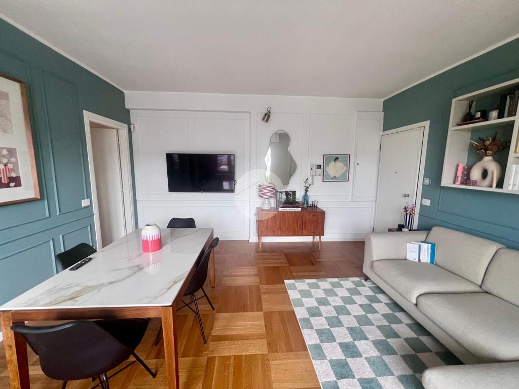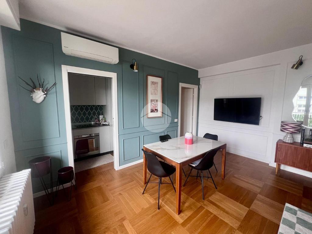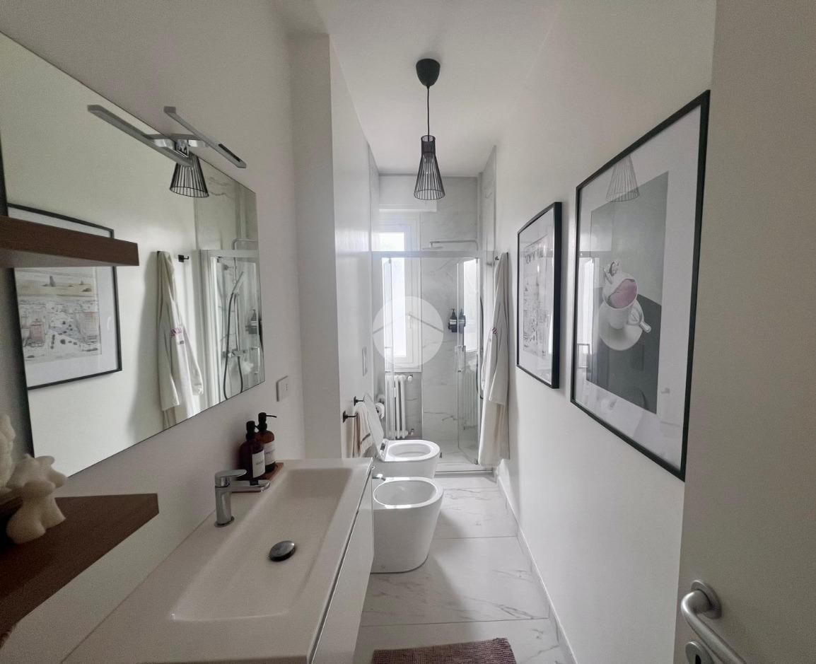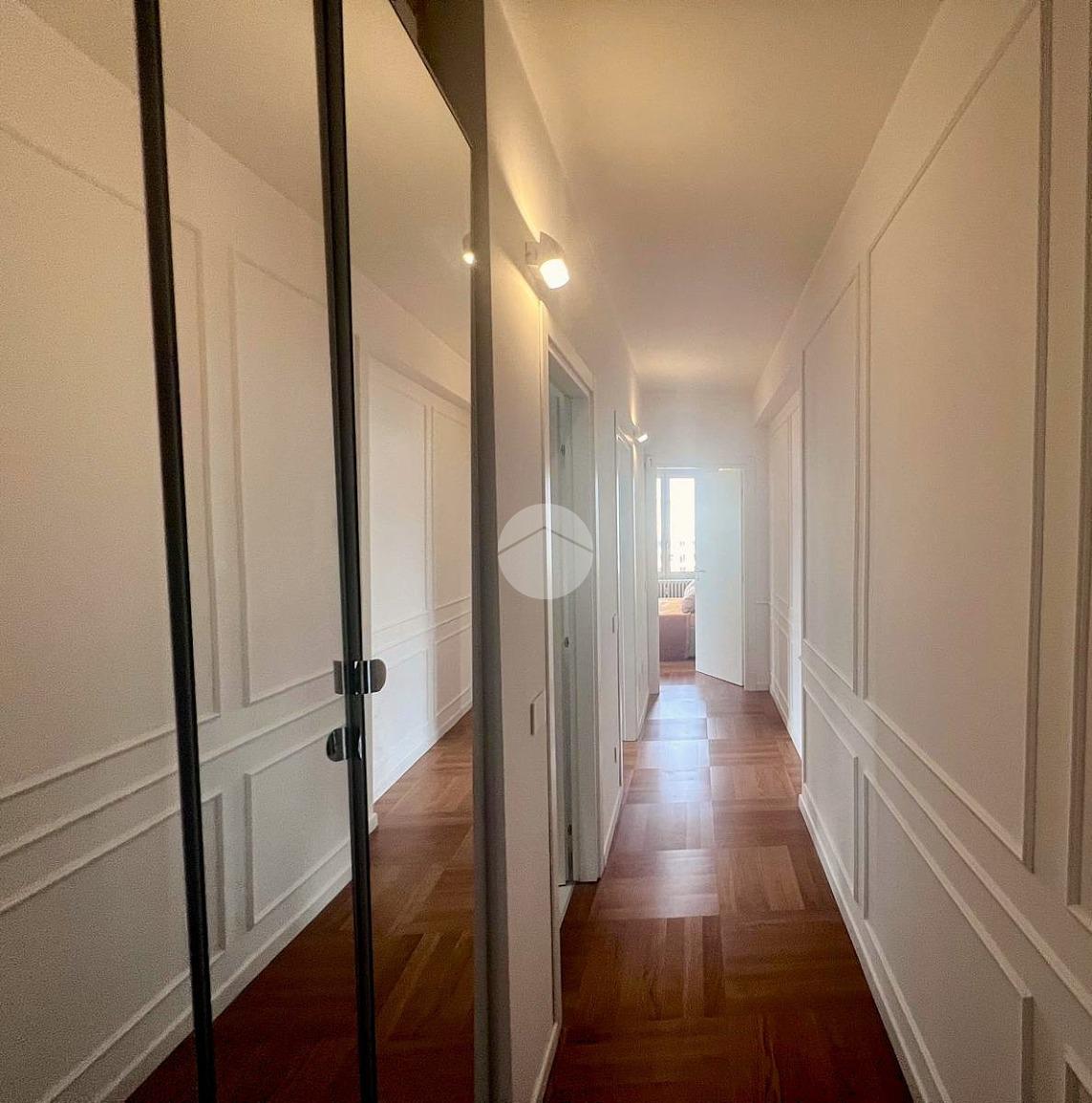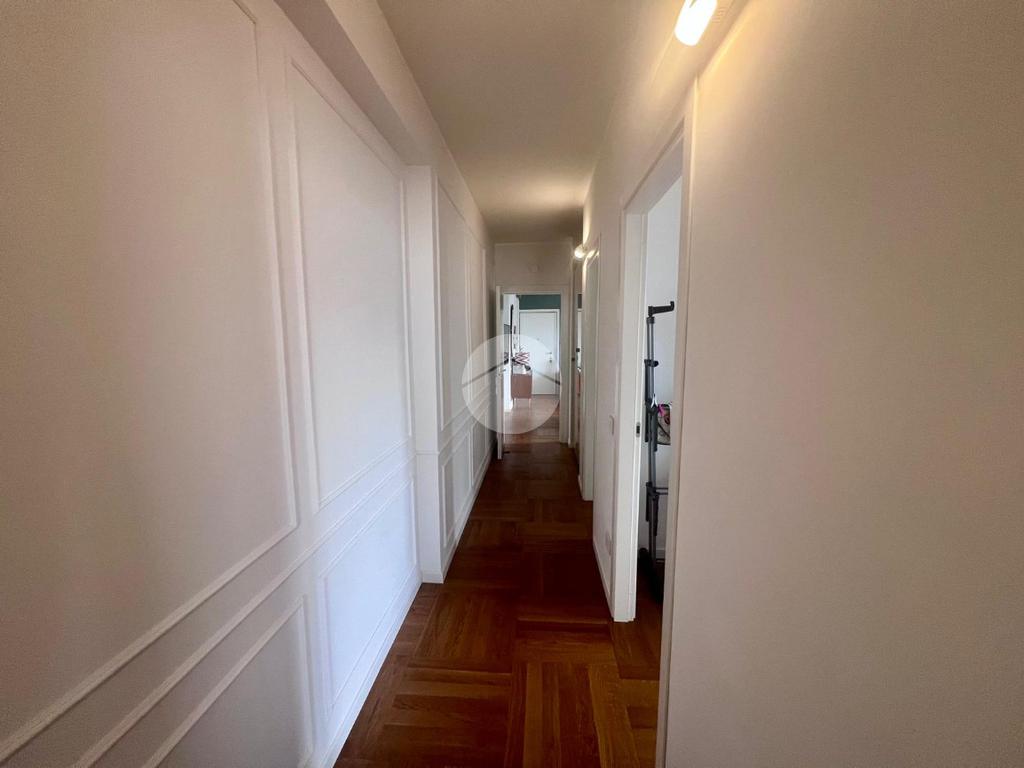 L’appartamento, oggetto di una completa ristrutturazione e arredato con gusto, si distingue per materiali di pregio e una distribuzione degli spazi pensata per garantire comfort ed eleganza. L’ingresso si apre su una luminosa zona living impreziosita da boiserie e balcone con affaccio panoramico. La cucina, separata e completamente attrezzata, è ideale per chi ama vivere la casa con funzionalità e stile.