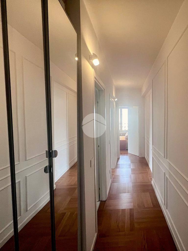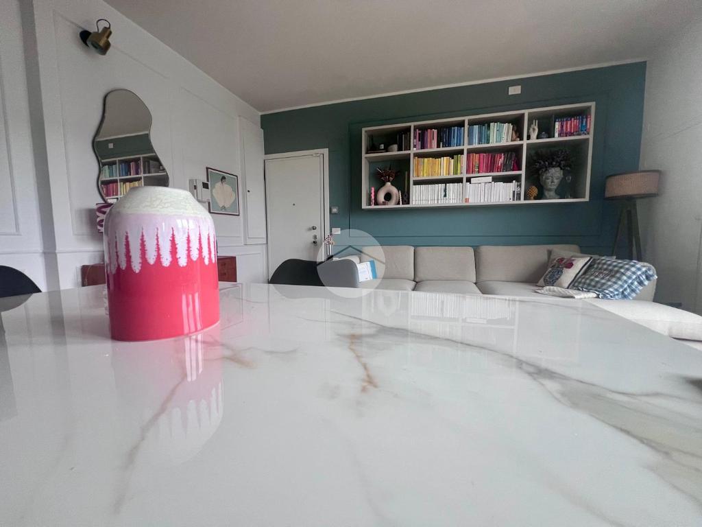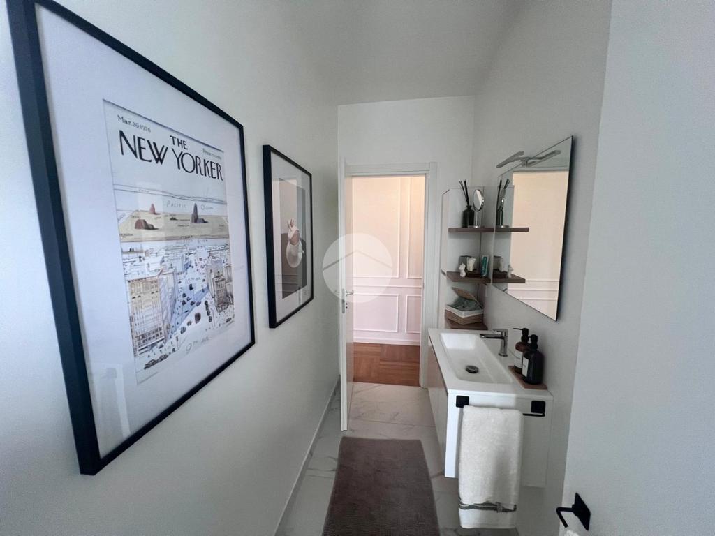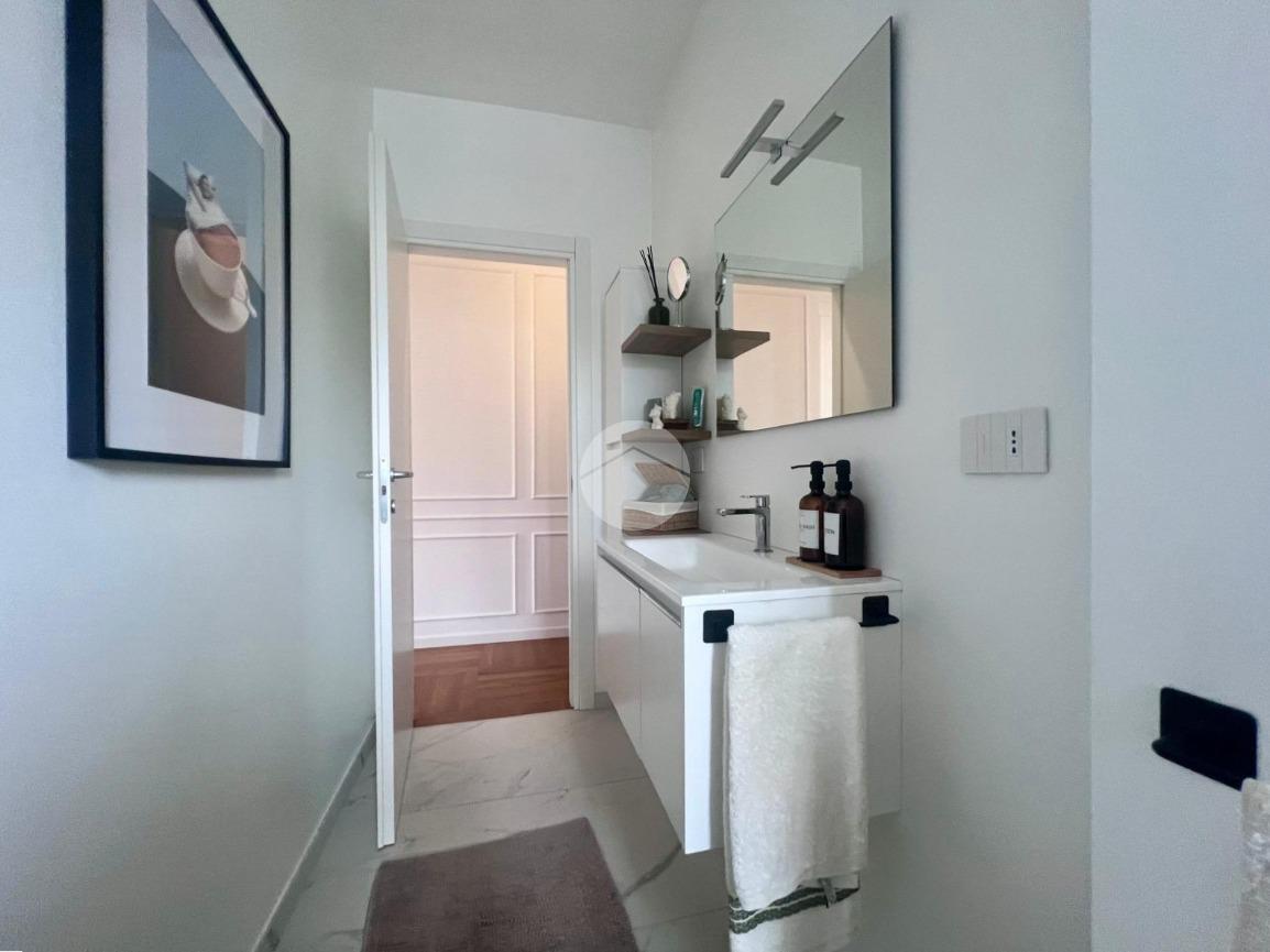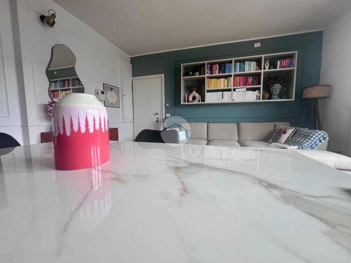 L’appartamento, oggetto di una completa ristrutturazione e arredato con gusto, si distingue per materiali di pregio e una distribuzione degli spazi pensata per garantire comfort ed eleganza. L’ingresso si apre su una luminosa zona living impreziosita da boiserie e balcone con affaccio panoramico. La cucina, separata e completamente attrezzata, è ideale per chi ama vivere la casa con funzionalità e stile.