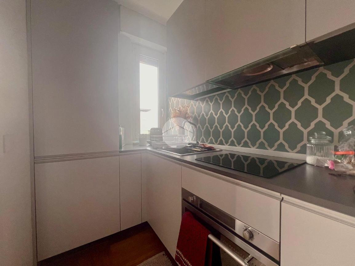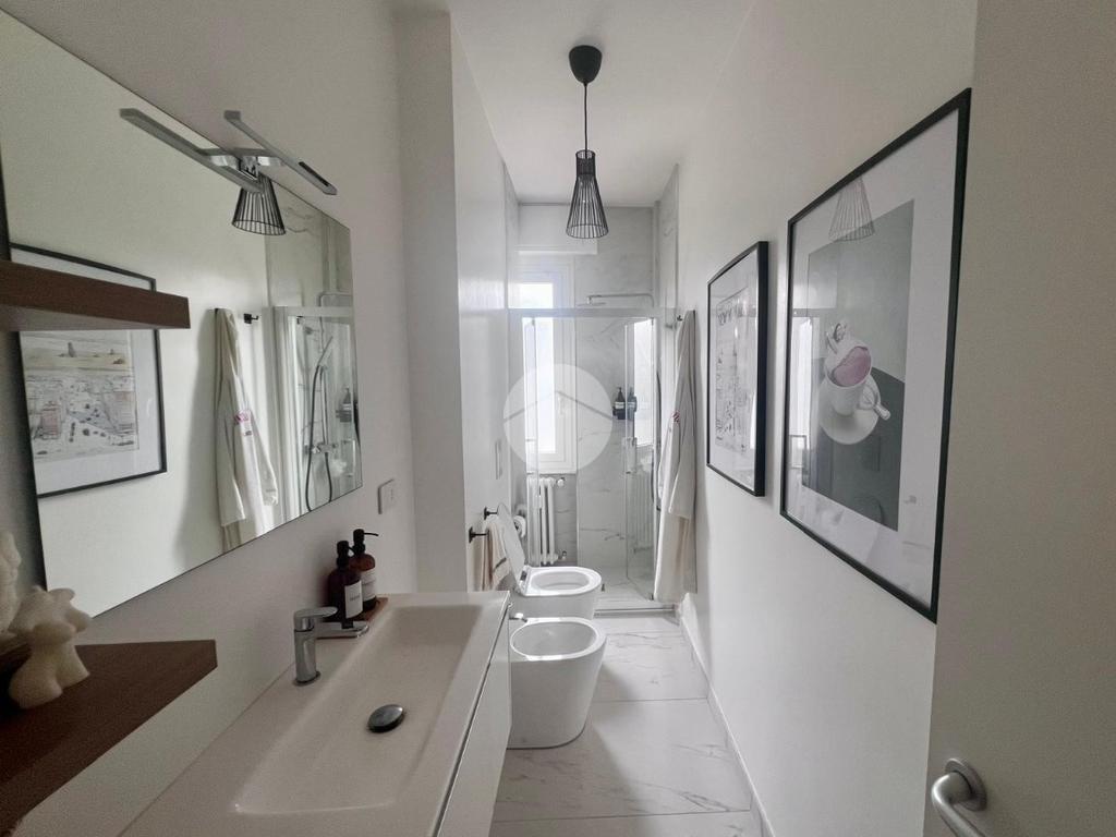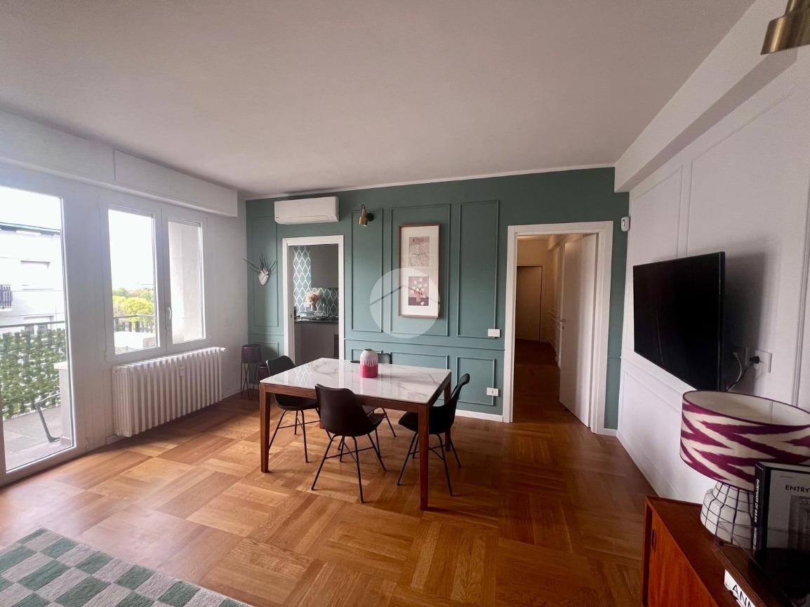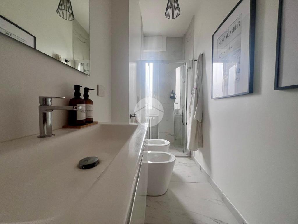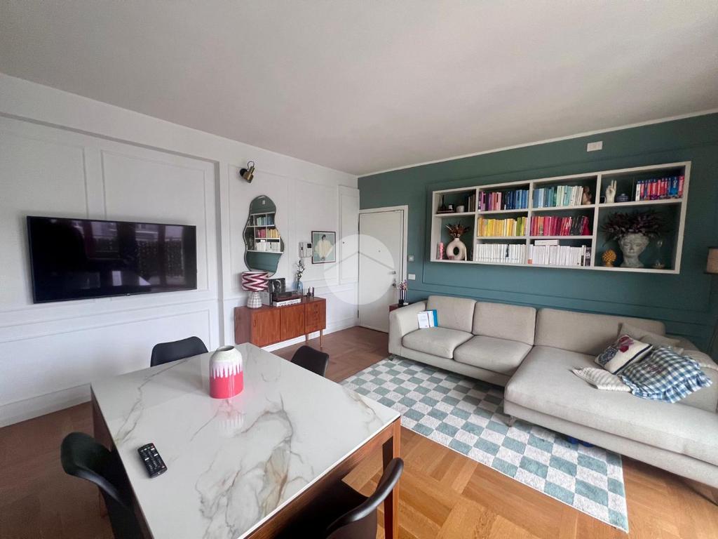 L’appartamento, oggetto di una completa ristrutturazione e arredato con gusto, si distingue per materiali di pregio e una distribuzione degli spazi pensata per garantire comfort ed eleganza. L’ingresso si apre su una luminosa zona living impreziosita da boiserie e balcone con affaccio panoramico. La cucina, separata e completamente attrezzata, è ideale per chi ama vivere la casa con funzionalità e stile.