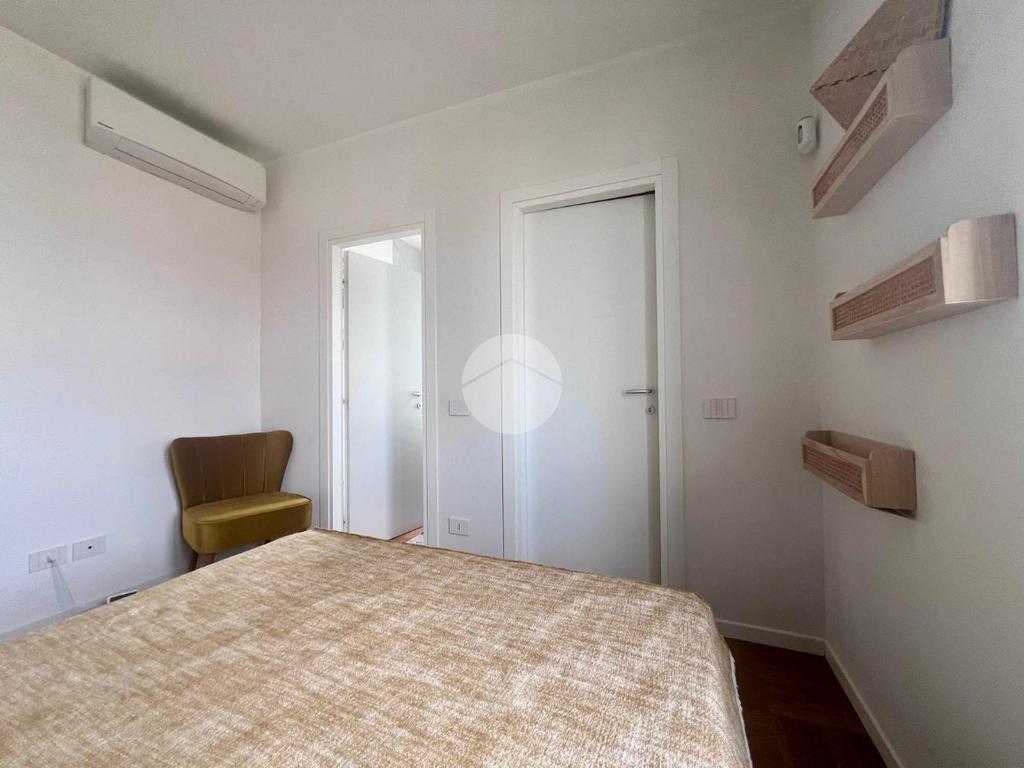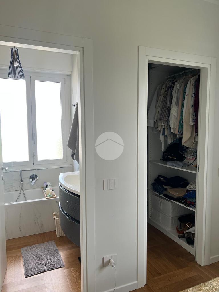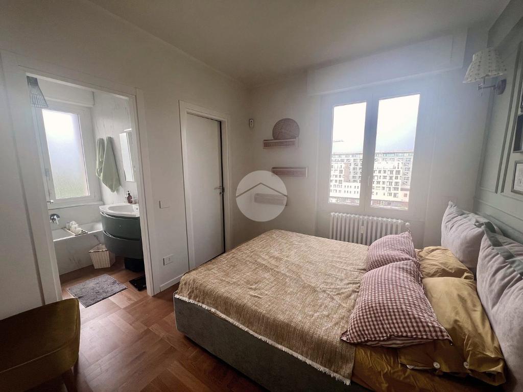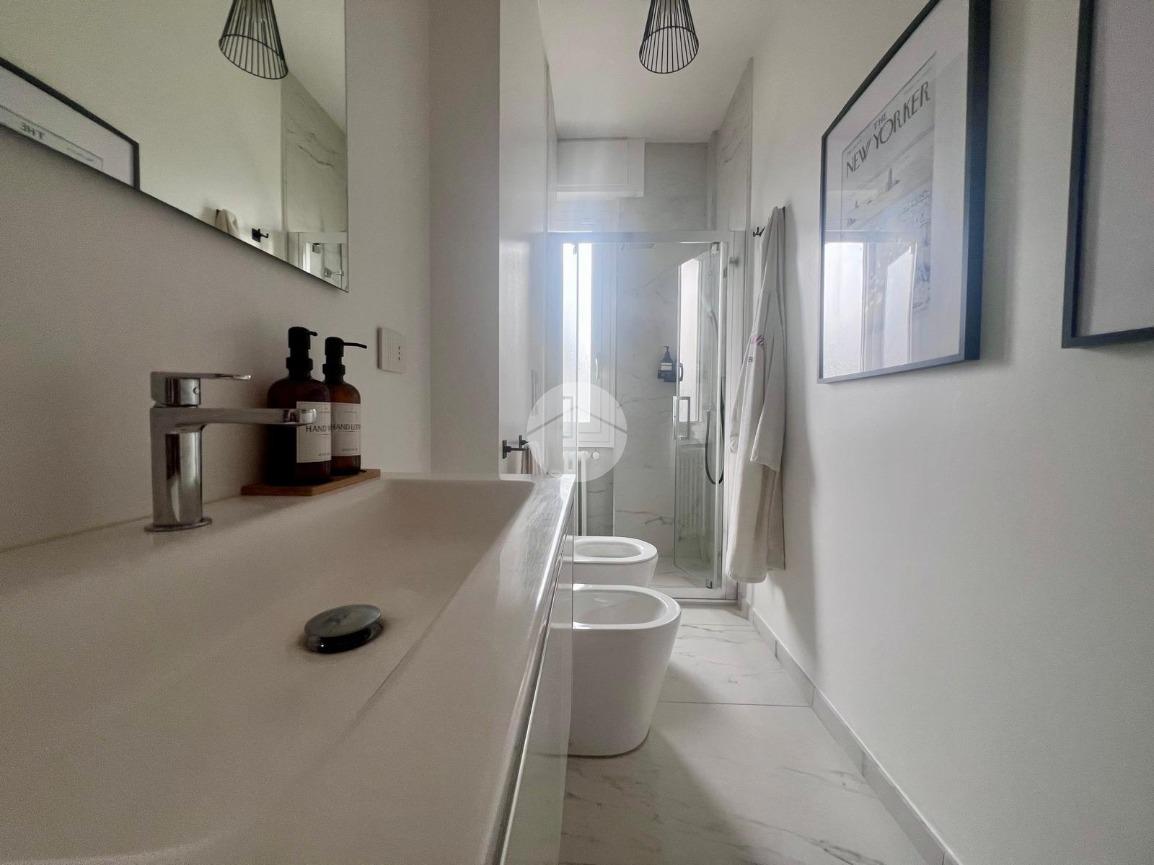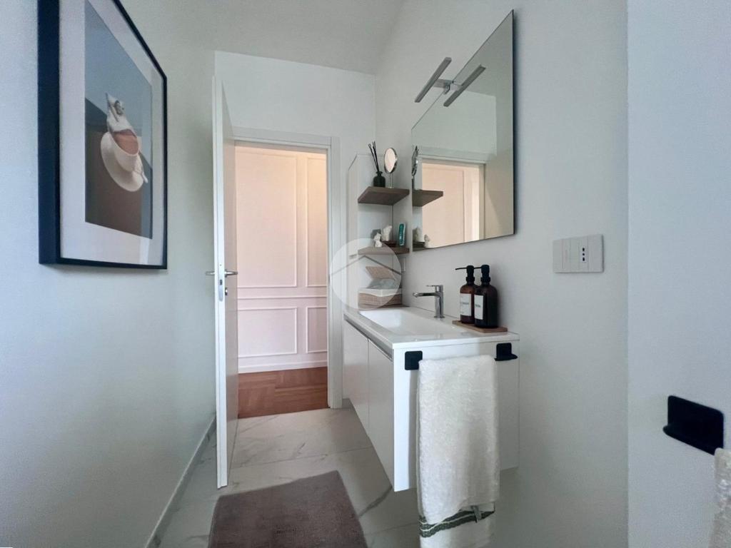 La zona notte è composta da due camere da letto: la master bedroom, arricchiata da una cabina armadio, dispone di bagno en suite con eleganti finiture; la seconda camera è servita da un ulteriore bagno finestrato, anch’esso rifinito con materiali di alta qualità.