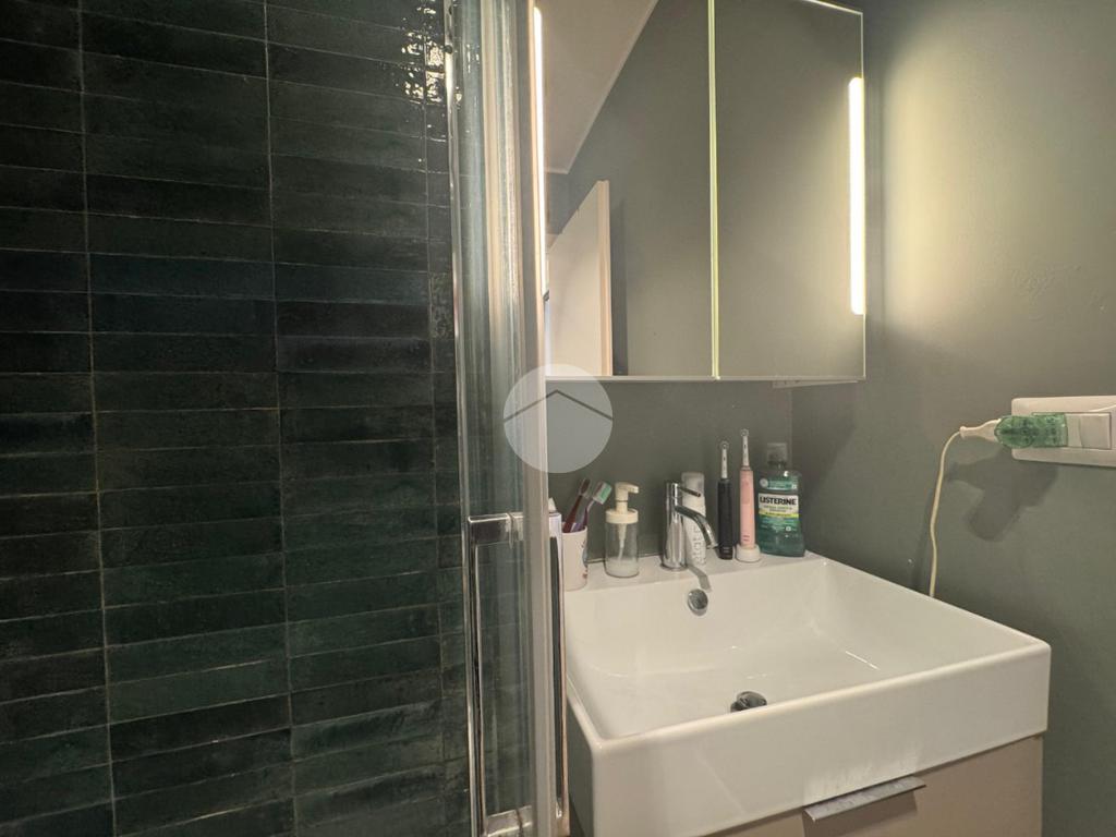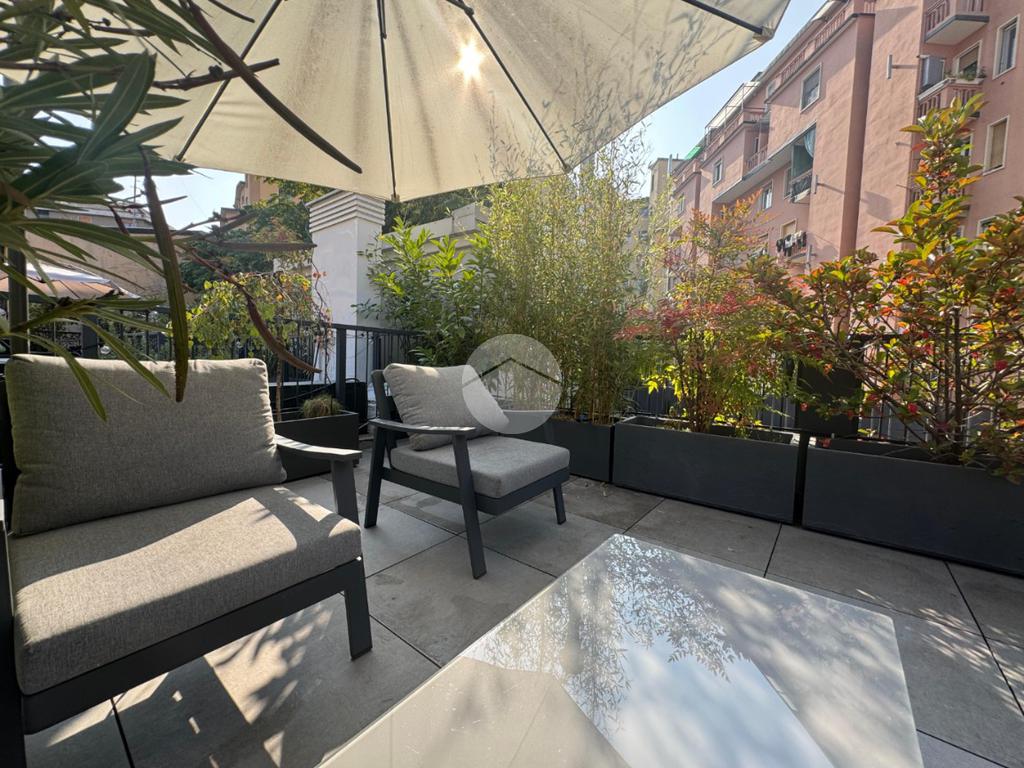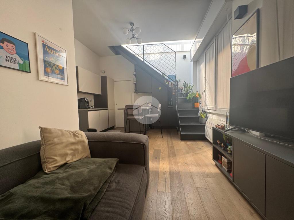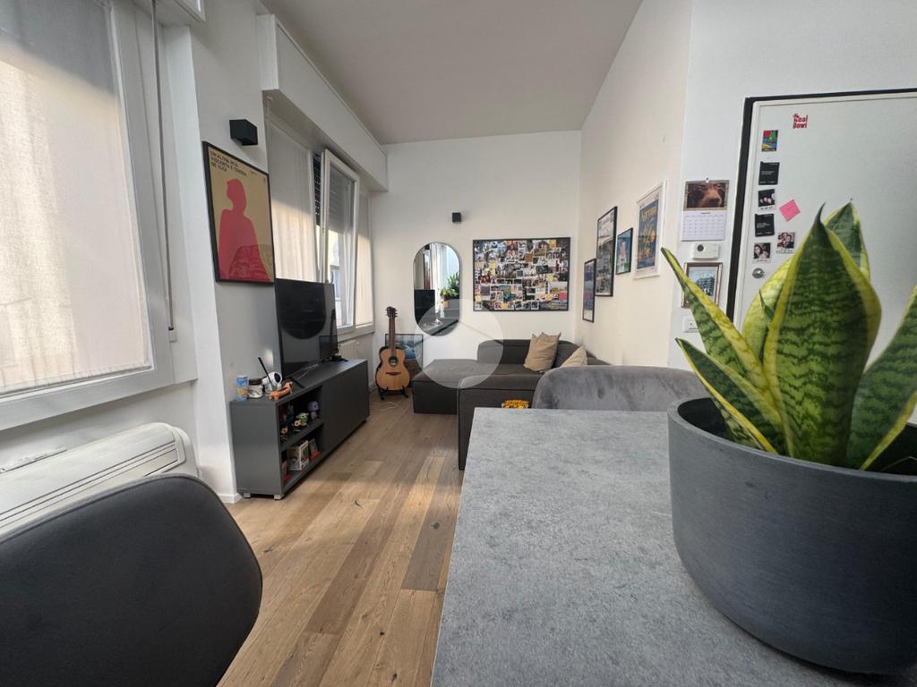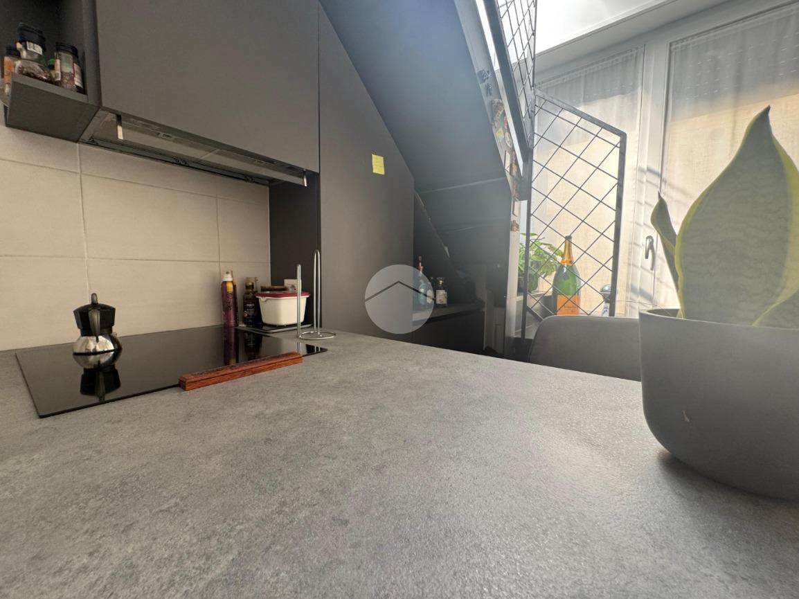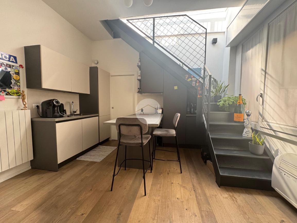 L’appartamento si apre su una luminosa zona living con cucina a vista, sapientemente organizzata per coniugare stile e funzionalità. Dalla zona giorno, una scala conduce all’esclusivo terrazzo di 30 mq, uno spazio esterno ideale per momenti di relax, pranzi all’aperto o per chi desidera vivere la casa anche all’esterno.
