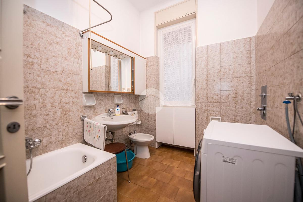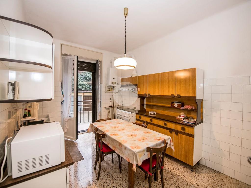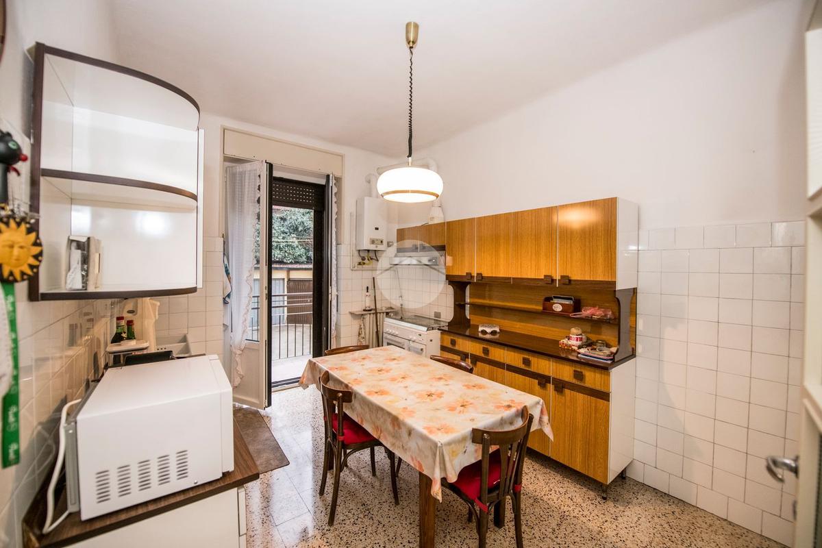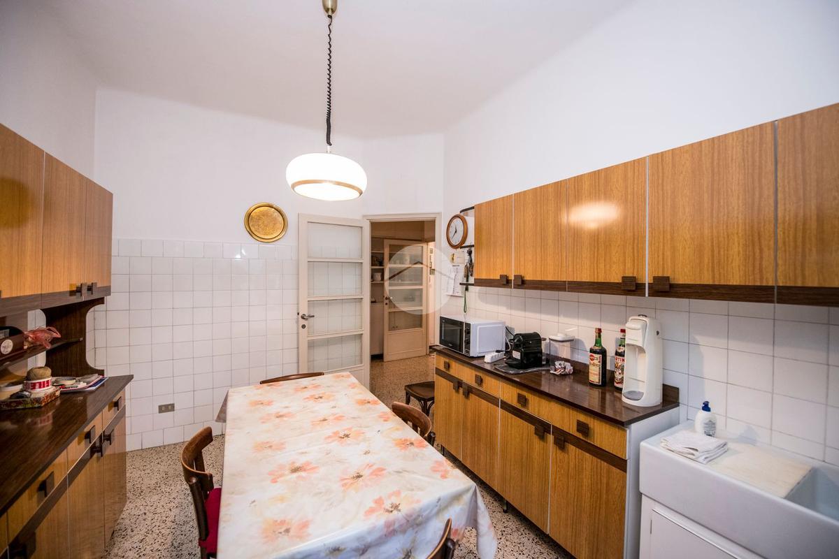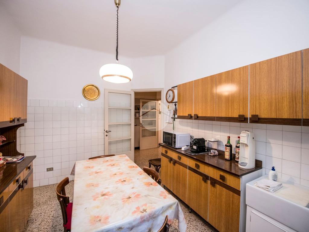 La cucina abitabile, separata, affaccia tramite balcone sull’interno del palazzo, offrendo un ambiente tranquillo e riservato. Completano la proprietà un bagno finestrato e un ripostiglio.